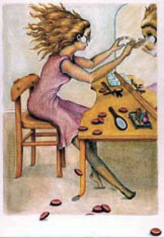 “Suddenly – all the Cheeks she had Ever Turned...”  color pencil.