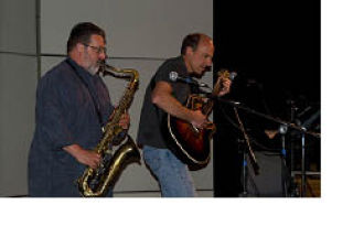 Gary Alexander and friend jam at last year’s successful membership drive for KLOI.