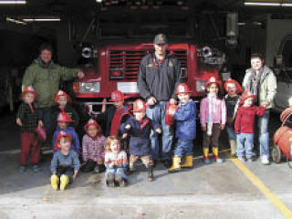 Above: The preschool class visits with the fire department on a field trip this year. far left: Preschooler Valentina Rendon smiles for the camera.