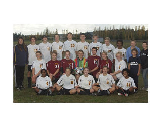 The Lopez Soccer team. Back row: l to r: Coach Melanie Weber, Matthew Haber, Grant Fisher, Nate Drahn, William Carson, Emmett Lawrence, Sam Ferguson, Arlen Coiley, Solomon Bill, Breton Carter, Hannah Hobi. Second row, l to r: Maddie Rain, Laura Strom, Charlie O’Neil, Josef Blanc-Riddings, Tahoma Wrublesky, Lyra Dalton, Samantha Swanson, Owen Rain, ball boy. Seated, l to r: Nia Bartalucci, Elise Lewis, Brooke Schober, Jamie Cummings, Marta Bill.