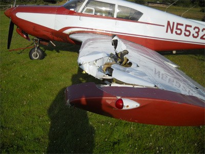 The left wing of the plane was damaged by the impact. The pilot, who was flying solo, was uninjured.