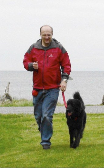The 1.5 year-old, flat-coat retriever service dog belongs to Jesse Jacobsen.
