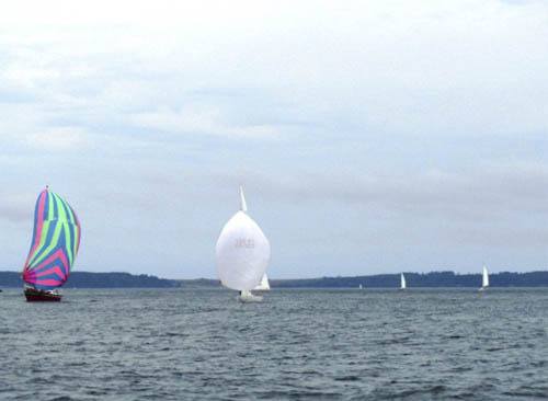 The race course started at the day marker at the entrance of Fisherman Bay Channel; then a 180 degree turn to Port at the Coast Guard mooring buoy located near Fish Creek Cove at the very south east end of San Juan Island; then back to Fisherman Bay. Those familiar with Fisherman Bay know it can be tricky getting in and out of the Bay at low tide. Russ Johnson commented “The race was scheduled to start at 1300 hrs. Saturday and of course it had to be low water (zero tide) at 1200 hrs. My biggest fear was just getting the boats out of the harbor. We must all have the channel figured out by now because to my great relief all arrived at the starting line without sniffing bottom. Congratulations to all.”