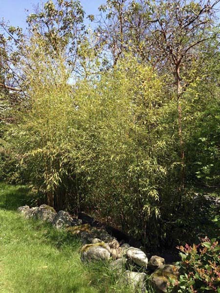 The stalks have risen to 15 feet tall and several feet in width-all in three years. It is a stunner of bright yellow culms (stalks) with a green sulcus (indent on the stalks). My beautiful Phyllostachys Spectabilis.