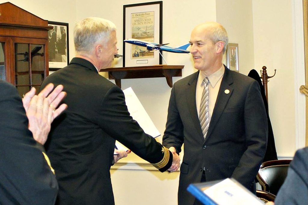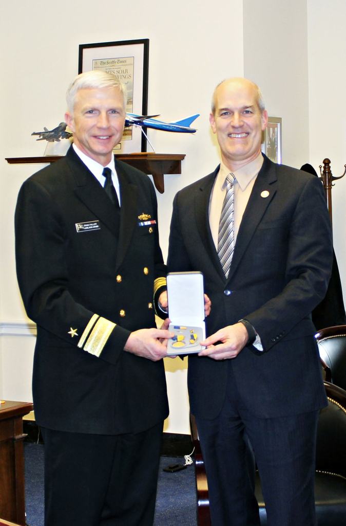 Rep. Rick Larsen (WA-02) was presented with the Distinguished Public Service Award, the Navy’s highest civilian honor, during a ceremony on Jan. 4.