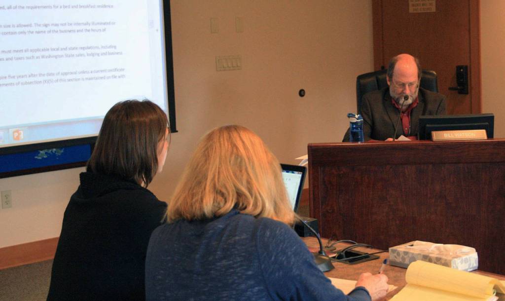 Staff photo/Hayley Day                                Erika Shook, director of San Juan County Community Development, and Linda Kuller, planning manager, present the proposed amendments to the vacation rental permit ordinance.