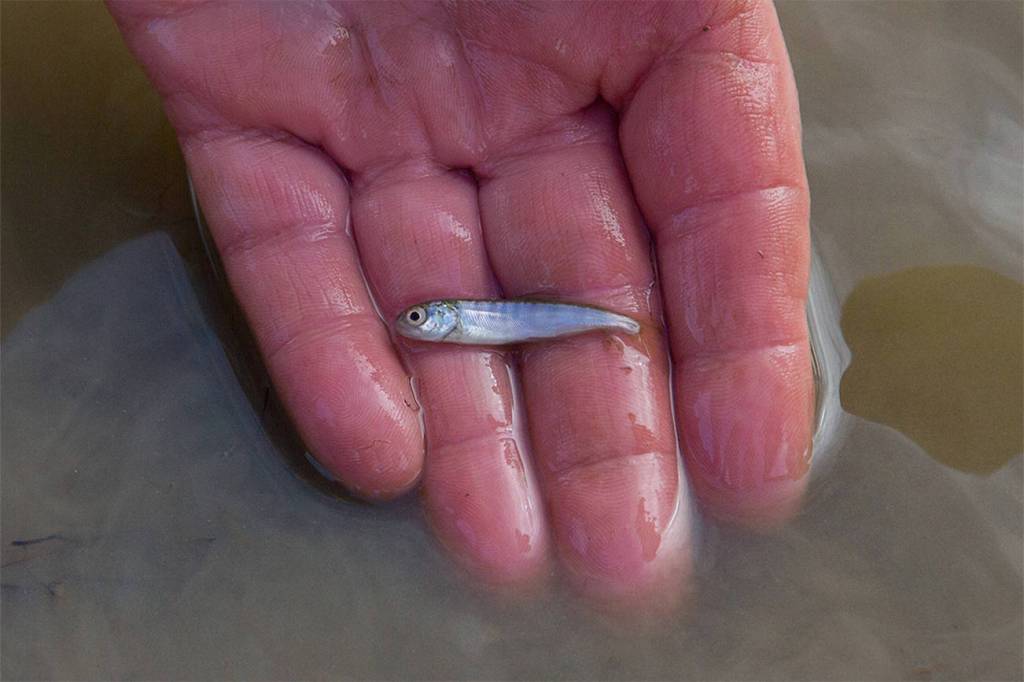 Water slowly crests the small channels that snake through the site and begins to seep across fields that still bear faint scars from disc plows. But it’s not fresh water released to irrigate barley or seed crops. The shimmer atop these Fir Island Farm fields this mid-February morning is a briny blend of groundwater and the Skagit Bay seawater that’s flooding in with the rising tide. The brackish water would be poisonous to crops, but it’s ideal for young Chinook salmon.