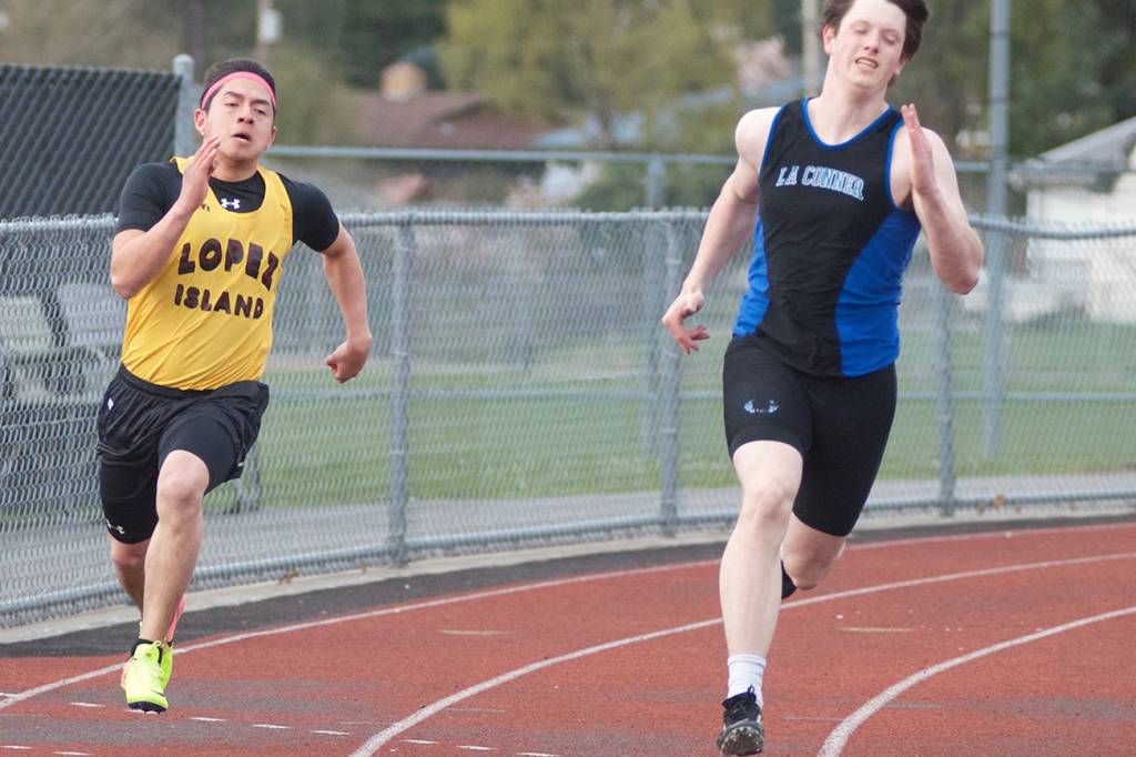 All competitions are held away because of the condition of the Lopez track. Upcoming meets include Coupeville on April 24, Anacortes on May 3, and Districts on May 11 at the now-familiar Mt. Vernon facility. Spectators are welcomed and encouraged.