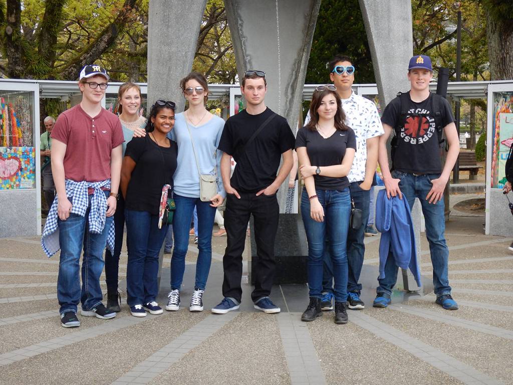 The third leg took students to the Hiroshima Peace Memorial Museum, a museum that serves as a heartfelt reminder of the repercussions of nuclear warfare. The group collectively folded a thousand origami cranes and hung them on the Sadako Sasaki Memorial. That night, students ferried to Miyajima, an island that is a national park and world heritage site in the Inland Sea. They climbed to the top of Mt. Misen and peered down at the oyster-raft-speckled archipelago.