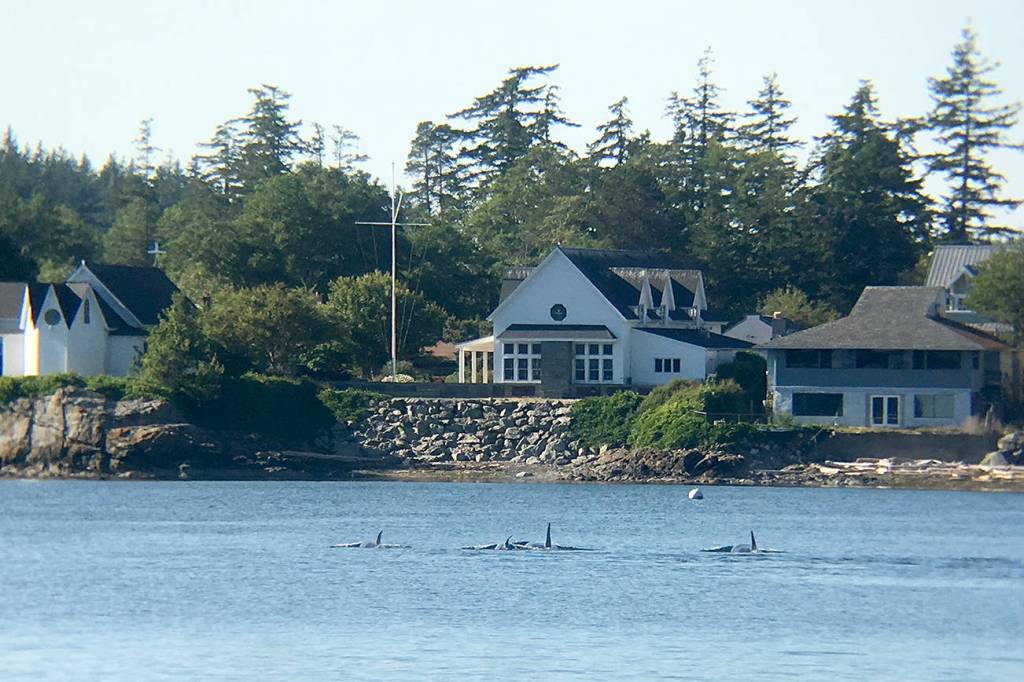The village of Eastsound was treated to a rare sight on the 4th of July when a few transient orcas swam through the sound.