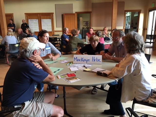 Earlier in July, Lopez Island Fire and EMS, the Neighborhood Emergency Preparedness Group and local land managers hosted a conversation about fire with 70 Lopezians. The purpose of the gathering was to start a collaborative initiative to address risks, challenges and tools, working with the community to address the needs as expressed by the community. Personal invitations were mailed to every landowner adjacent to public lands. The evening’s presenters, coordinators, helpers and facilitators were Lopez Island Fire Chief J. Havner; Neighborhood Emergency Preparedness Group Coordinator Carolyn McGown; Lopez’s San Juan County Land Bank Steward Amanda Wedow; Department of Natural Resources Wildland Firefighting experts Rich Dodd and David Way; San Juan County Fire Marshall RJ Myers; Lopez Community Trails Network Mike Moore; Firewise San Juan County Coordinator Ron Garner; and the San Juan Islands National Monument team Rosie Sumner, Nick Teague and Marcia deChadenedes.