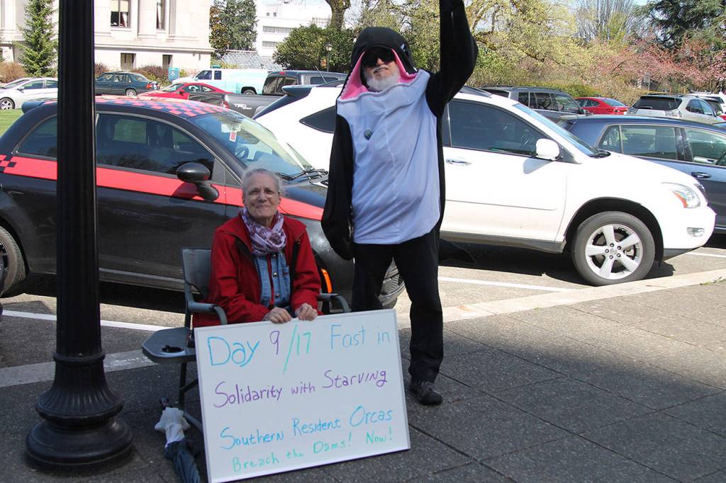 She at outside from 10 a.m. to 4 p.m. every day with a sign that read, “Solidarity with starving Southern Resident Orcas. Breach the Dams! Now!”