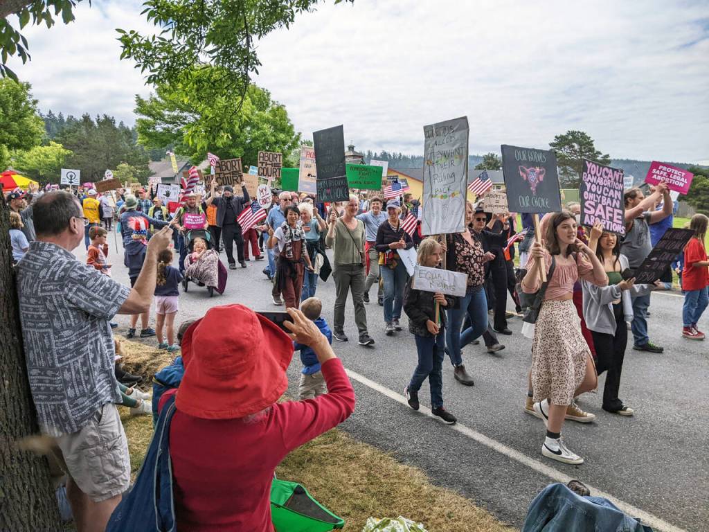 What more fitting a topic for an Independence Day parade than a person’s right to control over their own body and its functions? A huge crowd made signs and marched in the Lopez Island Fourth of July parade for exactly that cause: the restoration of the right to choose.
