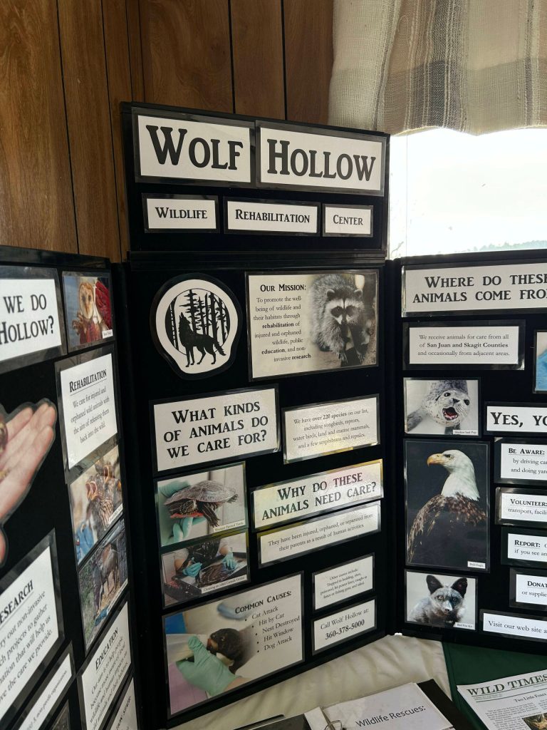 Tucked in the trees on Boyce Road on San Juan island is Wolf Hollow Wildlife Rehabilitation Center. Wolf Hollow is a non-profit organization and their mission is to “promote the well-being of wildlife and their habitats through rehabilitation of injured and orphaned wildlife, public education and non-invasive research.” Wolf Hollow helps various types of wildlife, if there is an orphaned baby bird or an injured seal pup, they can help.