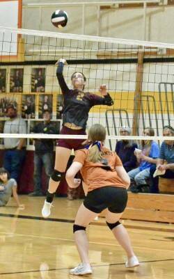 The Lobos Volleyball team hosted the Evangel Classic High Raggants from Marysville on Oct. 9. Lopez entered the contest with a 4-3 record. The first game started slowly, with scoring even until Lopez pulled ahead at Lobos 10, Raggants 6, then 15-7 and finished 25-12. Coach Karrie Warner met with the team before the second game and encouraged them to play closer to the level at which they were capable, to keep pressing, not to let up. The message clearly got across as Betty Burt opened as server and reeled off 15 quick points. Lopez went on to win, 25-6. The third and final game ended Lopez 25, Evangel Classical 10.