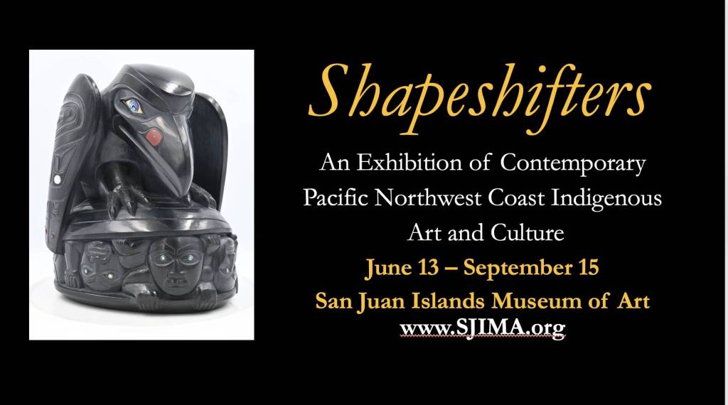 The San Juan Islands Museum of Art is proud to present “Shapeshifters” – a major exhibition of contemporary Northwest Coast Indigenous art, June 13 through Sept. 15, www.SJIMA.org. The Museum is located at 540 Spring St., Friday Harbor.