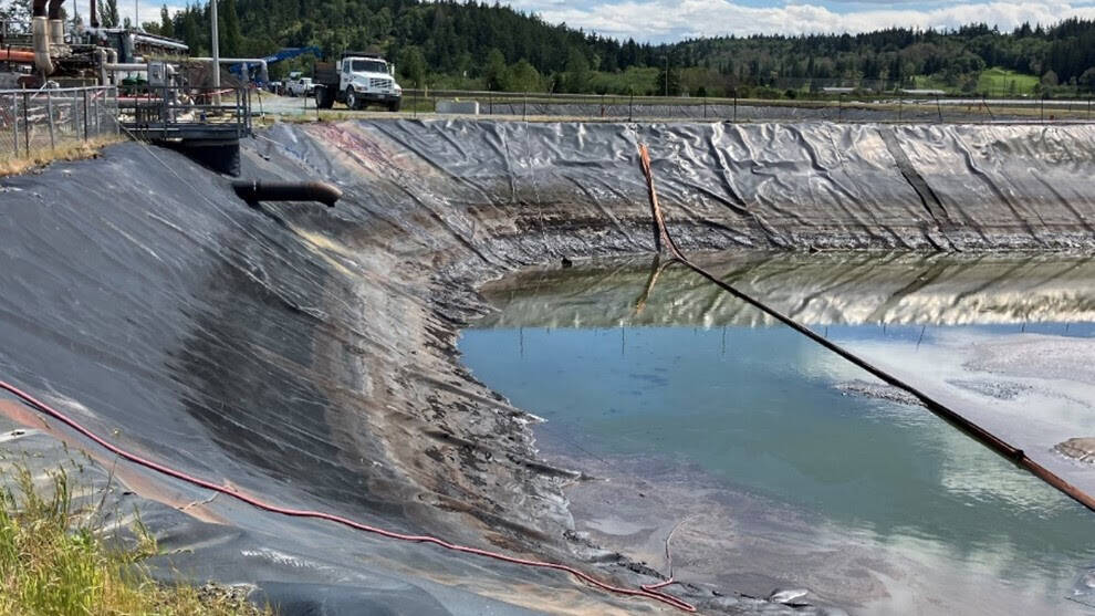 A portion of the 150,000-gallon neutralization pond at the Marathon Anacortes Refinery.