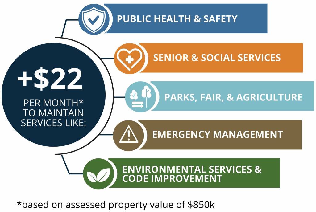 After making reductions and pursuing additional revenues, the County is seeking a solution to maintain existing services into 2027 and beyond.