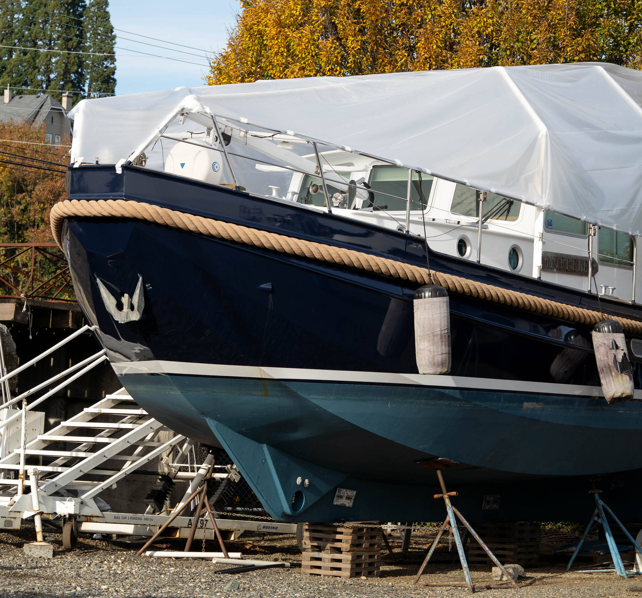 Recruited by boat owner Audrey Benedict, Smith’s Tanbark Marine Services is managing a retrofit that borders on audacious: turning an aging 38-foot Linssen steel motor vessel named Murrelet into one of the most sustainable boats in the Pacific Northwest.