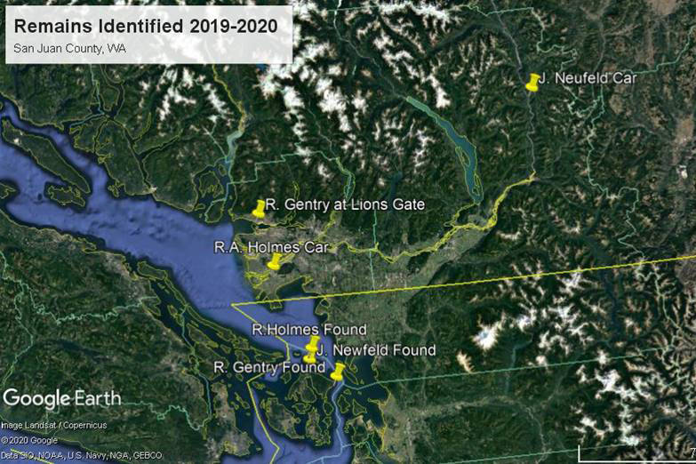 A detective from the San Juan County Sheriff’s Office followed each case, and there has been good coordination and information sharing with the Royal Canadian Mounted Police and British Columbia Coroners Service. None of these cases involve circumstances that are considered suspicious and the identification of the remains brings closure.