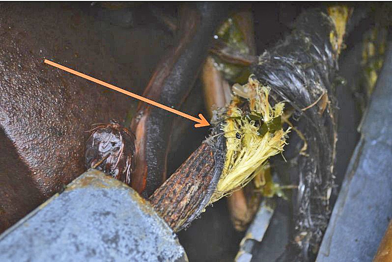 That’s the same CenturyLink cable that’s fraying, today. The fiber cable is encased in a thin, waterproof steel, which is not completely closed. Fiber is jutting out of the jagged seal, which is cutting and wearing the fiber down, said Rock Island’s Dan Burke to The Journal.